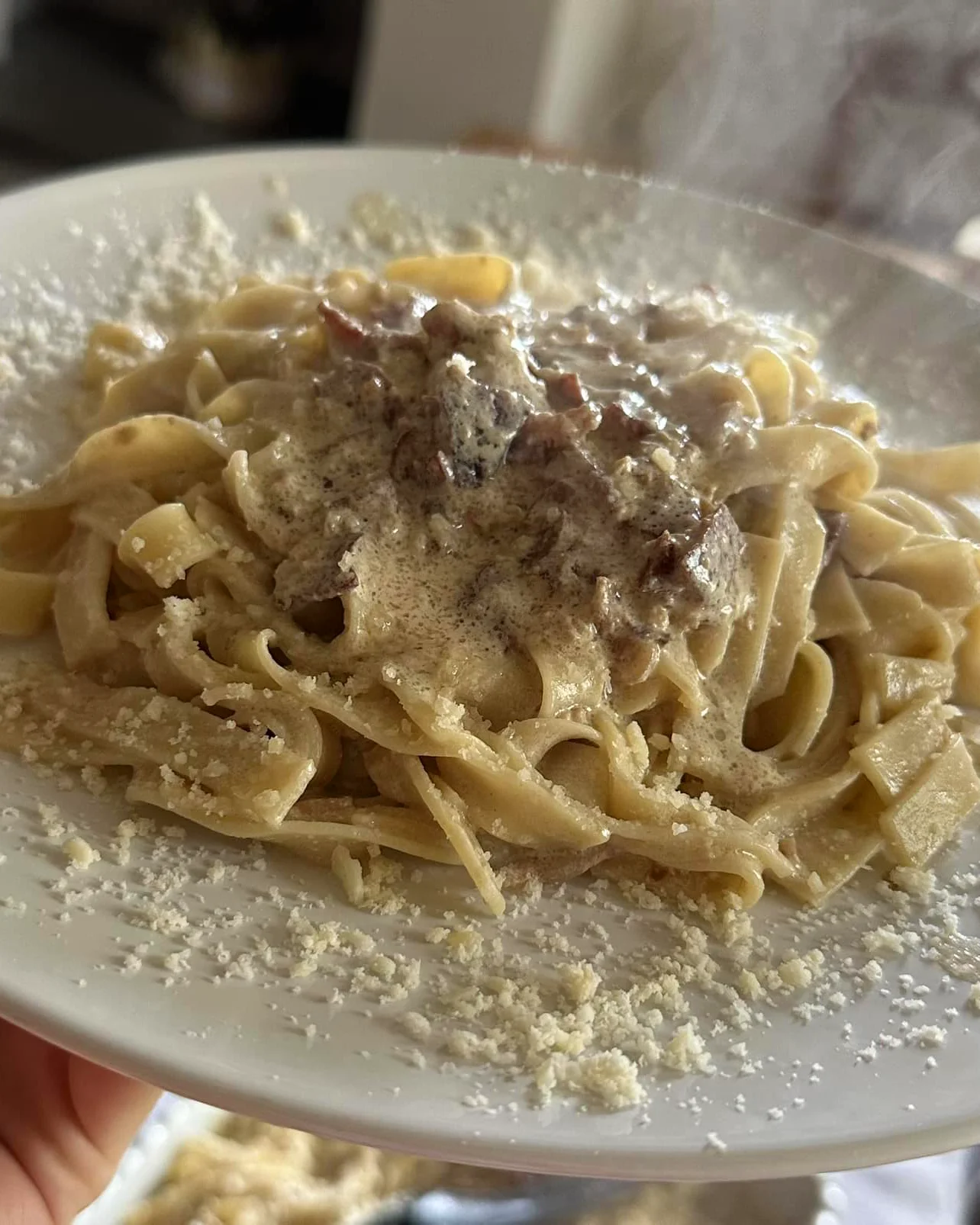 Tagliolini in crema di Parmigiano Reggiano, Culatta e Noci.